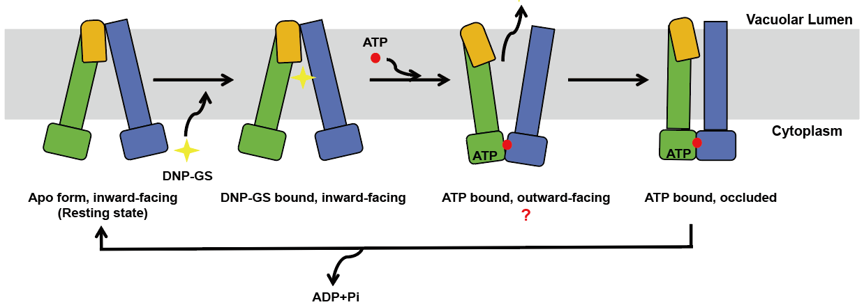 图. 拟南芥ABCC2介导底物DNP-GS外排的机制示意图